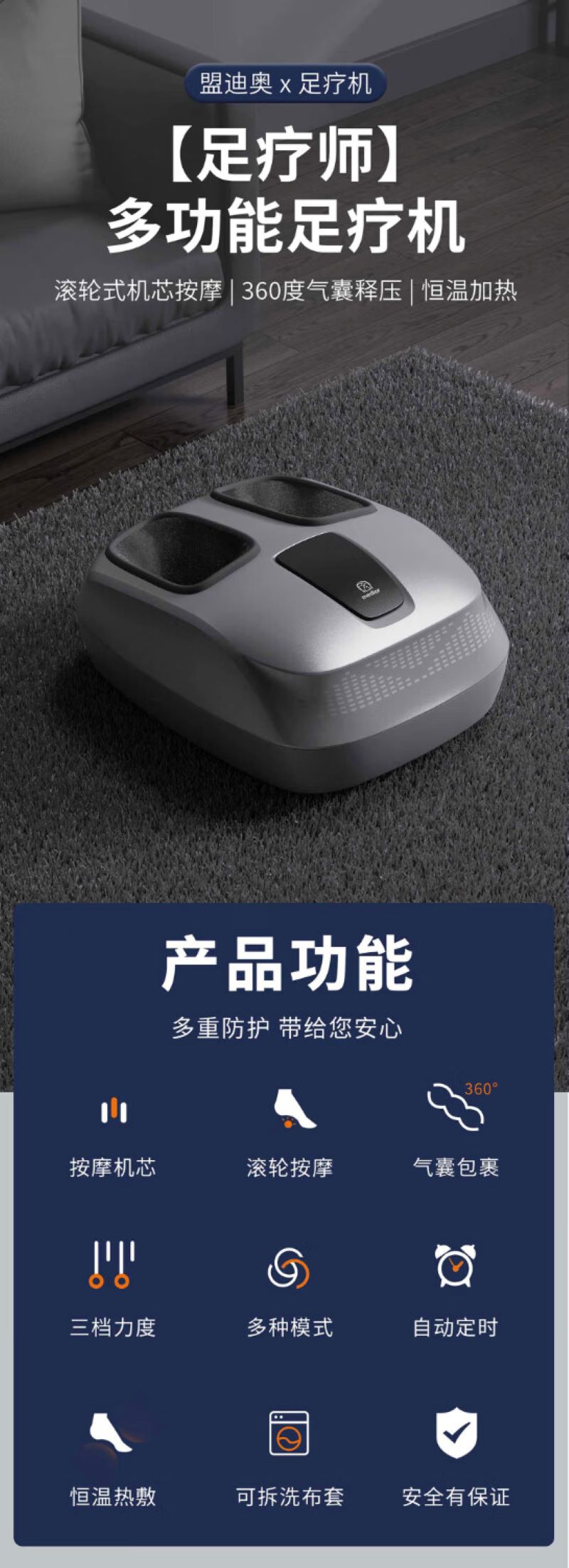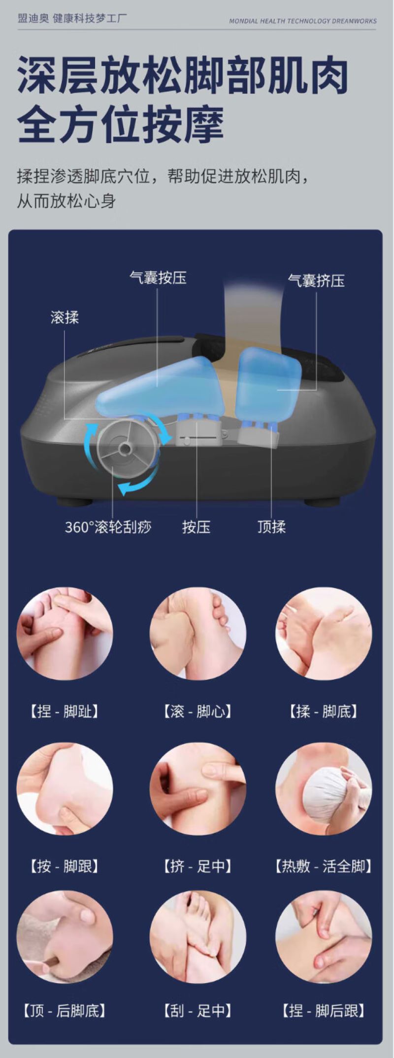 腳底按摩機(腳趾),刮擦(鞋底),Shiatus(腳跟)按摩(多模式,多強度)