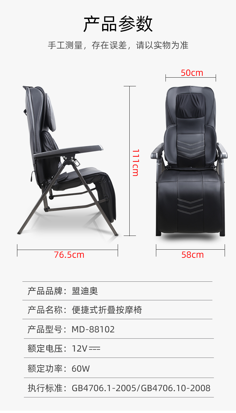 折疊式創(chuàng)意魔術(shù)拍打按摩椅1.頸部:創(chuàng)新壓肩按摩,正反轉(zhuǎn)揉捏,上下可調(diào)節(jié)高矮適應(yīng)不同人。