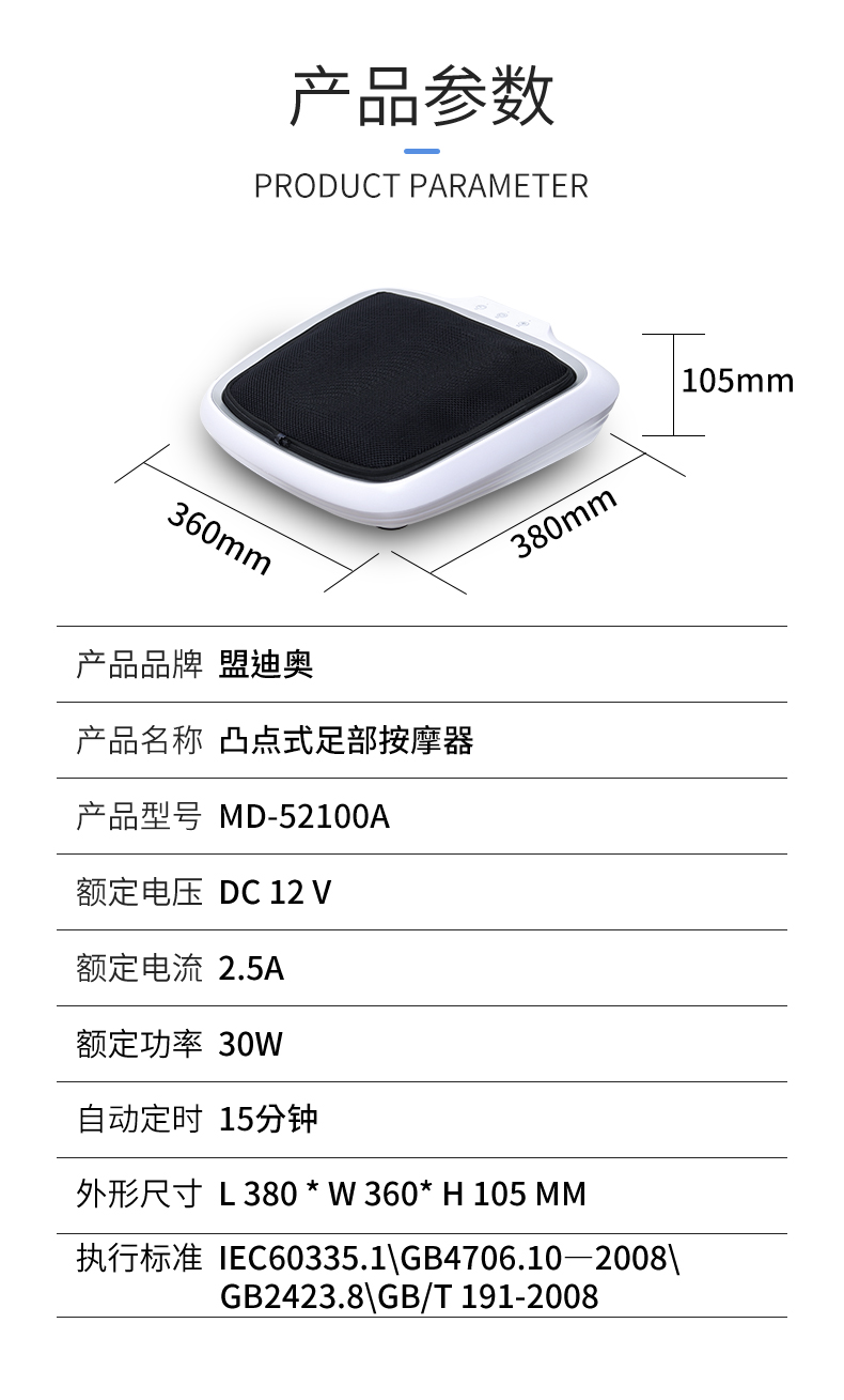 功能特征:腳底六個按摩頭,三檔力度調(diào)節(jié),按摩頭正反轉(zhuǎn),