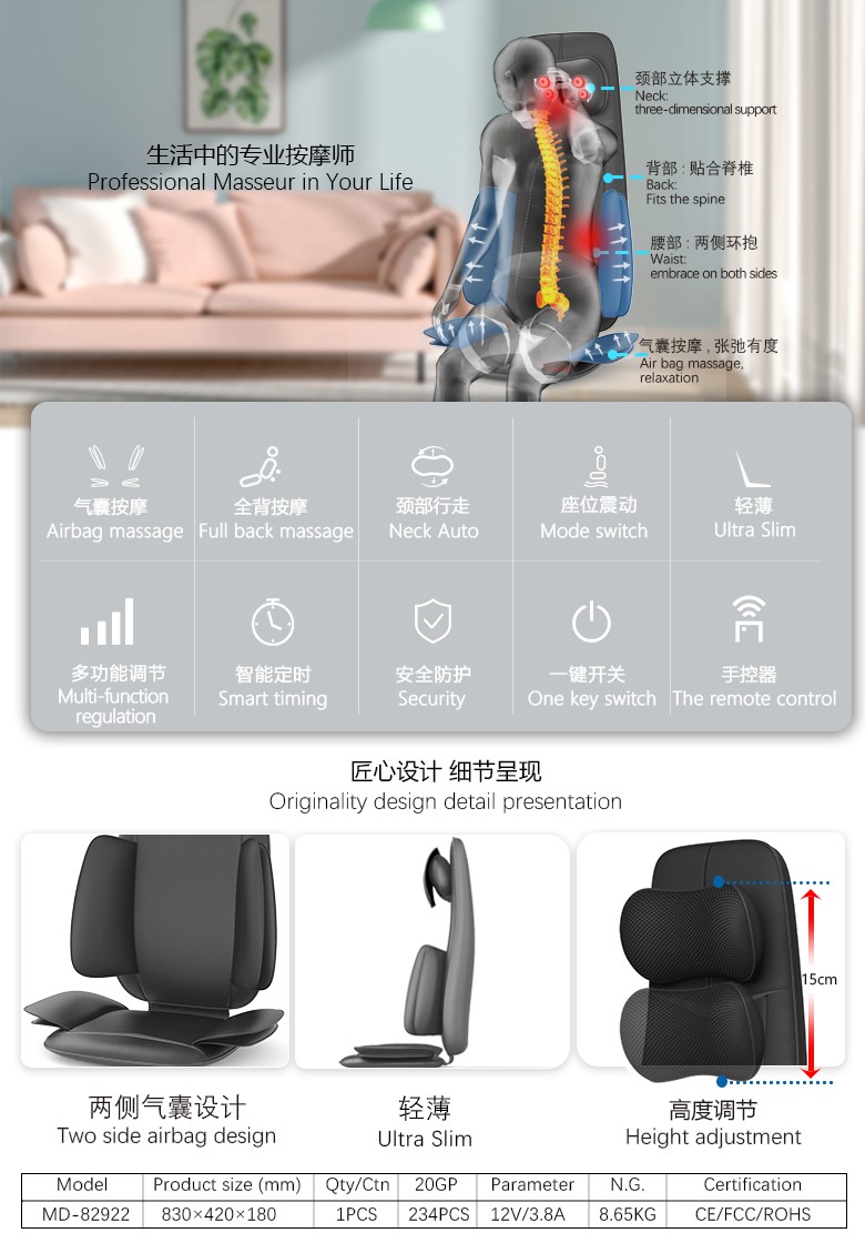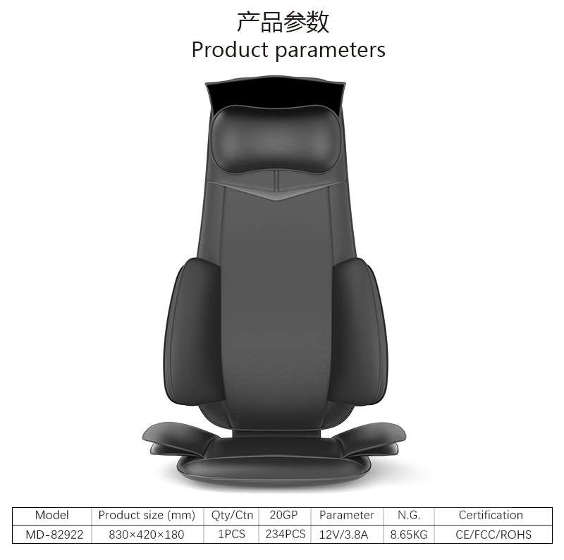 3.單電機(jī)8頭背部揉捏,普通車(chē)充,12V 5A適配器